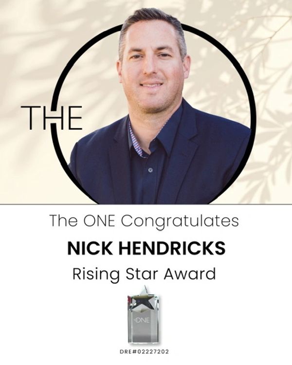 Nick Hendricks received the Rising Star Award, recognizing exceptional promise and emerging leadership within The ONE Luxury Properties. The award highlights his momentum, dedication, and growing impact within the brokerage and the luxury real estate market.